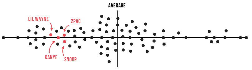 Some of the biggest names in hip hop were in the bottom 20%. Let’s take another look at the data: